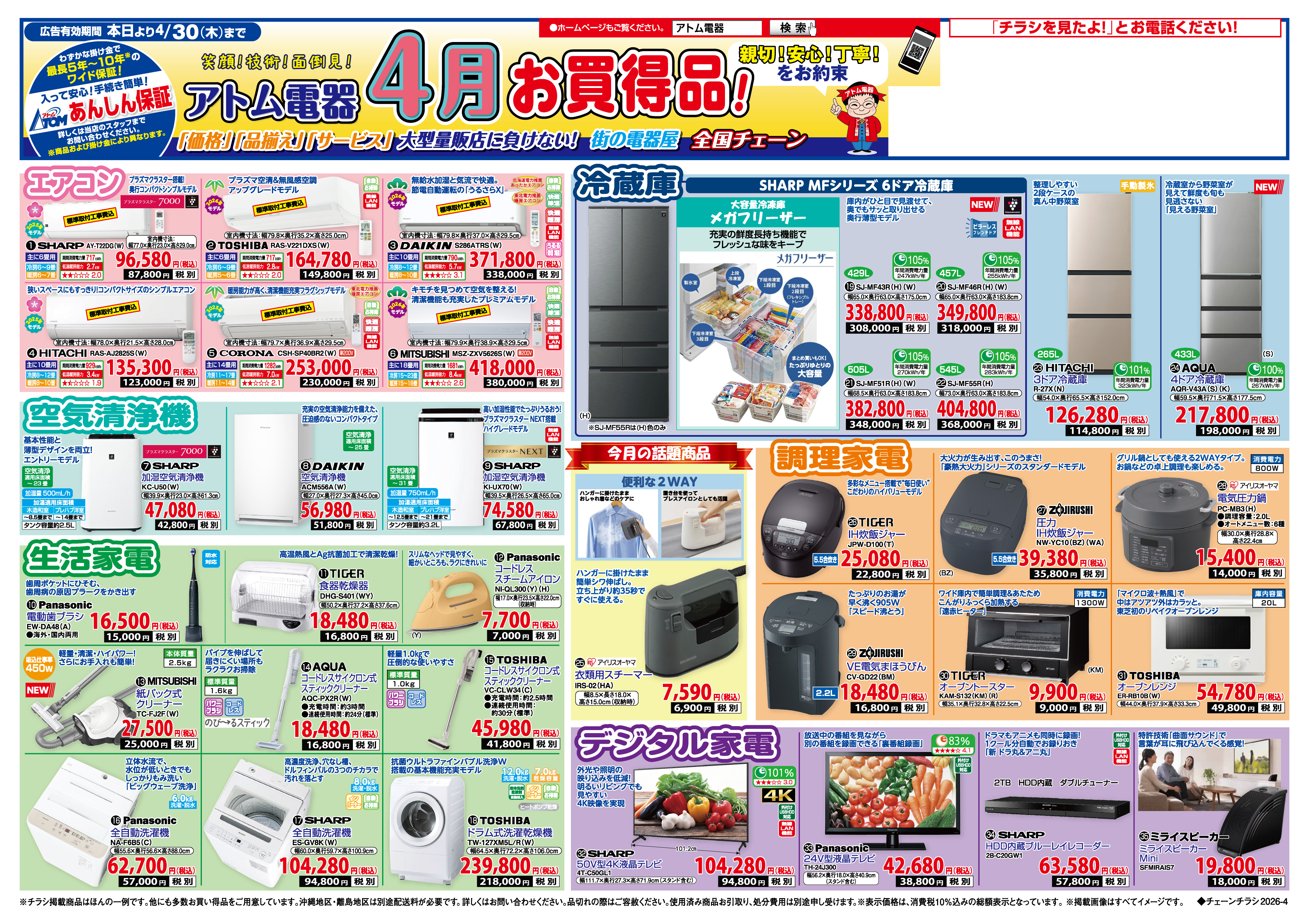当店は、アトム電器チェーンの特徴でもある「まちの電器屋」「家電量販店」の長所を兼ね備えたお店です。静岡市清水区周辺にお住まいの皆様に寄り添い安心、便利な暮らしをお手伝い致します。家電販売・配送・設置・修理・取扱説明・各種工事、他各種サービスも取り扱っております。